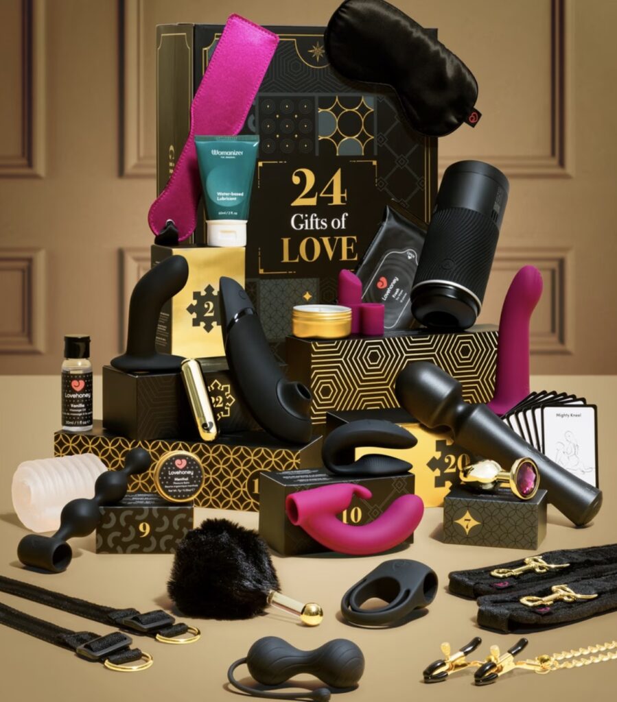 En sexkalender innehåller vuxenleksaker och tillbehör för både honom, henne och produkter att använda tillsammans.